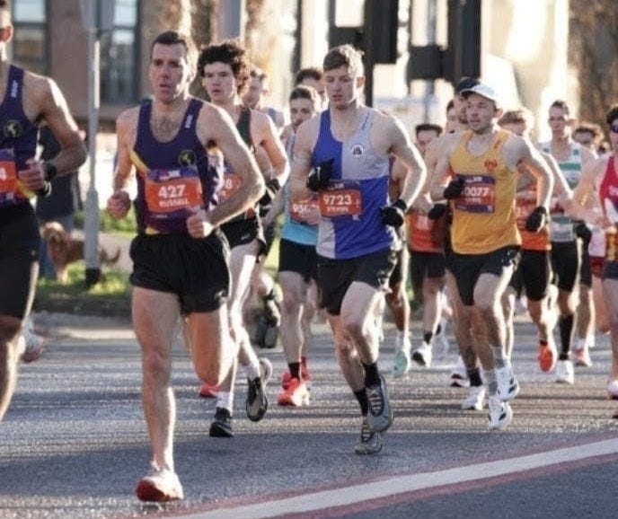 When we re-entered Leeds centre, the tall buildings blocked out the sun, and I could see my teammates Dan and Adam just ahead. I tried to pick up the pace, but so did they. They both ran 31:07. I came in 6 seconds behind, 31:13.